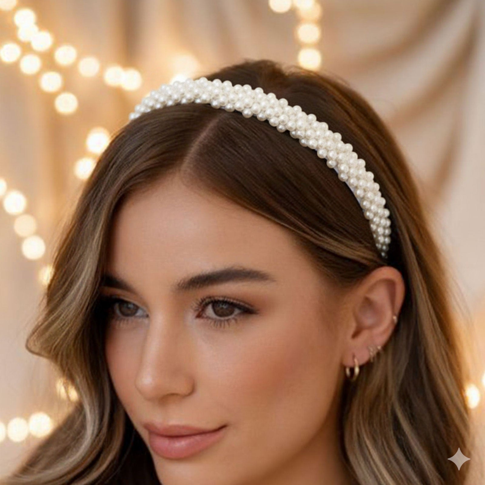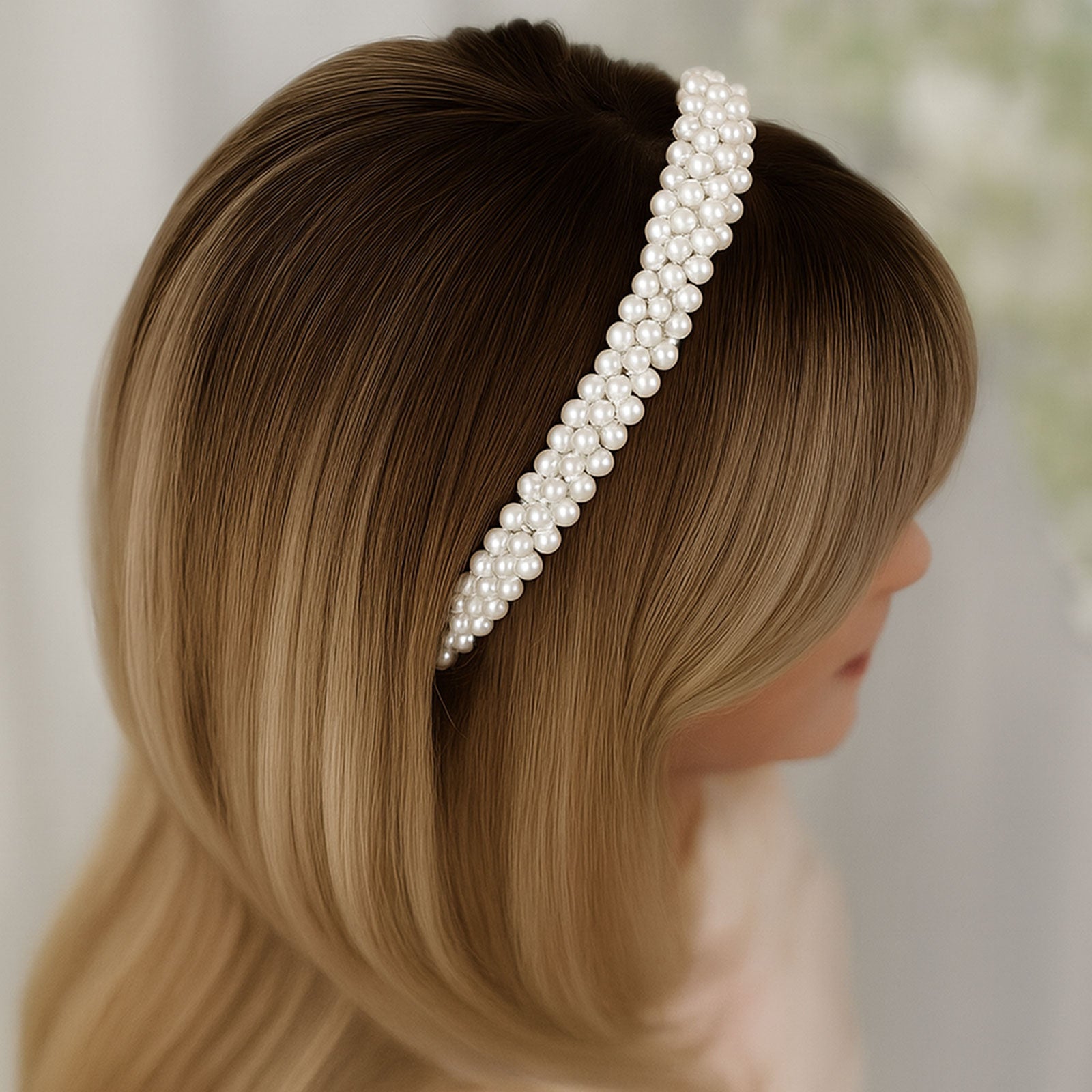 Ce serre-tête en perles blanches est bien plus qu’un accessoire : il est la touche chic et lumineuse qui complète votre coiffure avec subtilité.